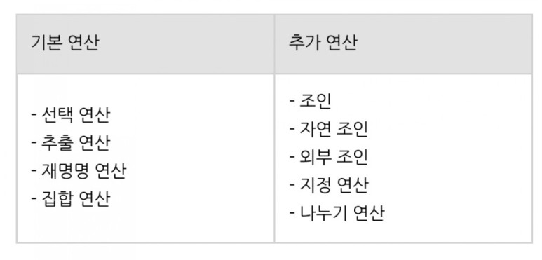 - ํผ์ฐ์ฐ์์ ์ฐ์ฐ ๊ฒฐ๊ณผ๊ฐ ๋ชจ๋ ํ ์ด๋ธ(๋ ์ฝ๋ ์งํฉ)์